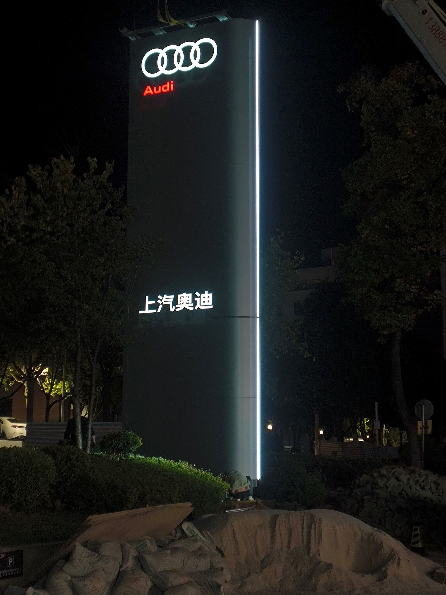 The SAIC Audi Monolith Signboard is the definitive exterior solution for premium brand positioning. By combining massive vertical scale with sophisticated LED engineering, this signboard functions as a visual anchor that communicates prestige and technological leadership long before a customer enters the showroom.